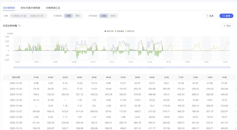 现货交易面临供需短时波动。路明星光AI智能预测模型动态判断天气、供需等瞬时变量,实现精准的短期预测,辅助交易员决策,完成利益最大化。